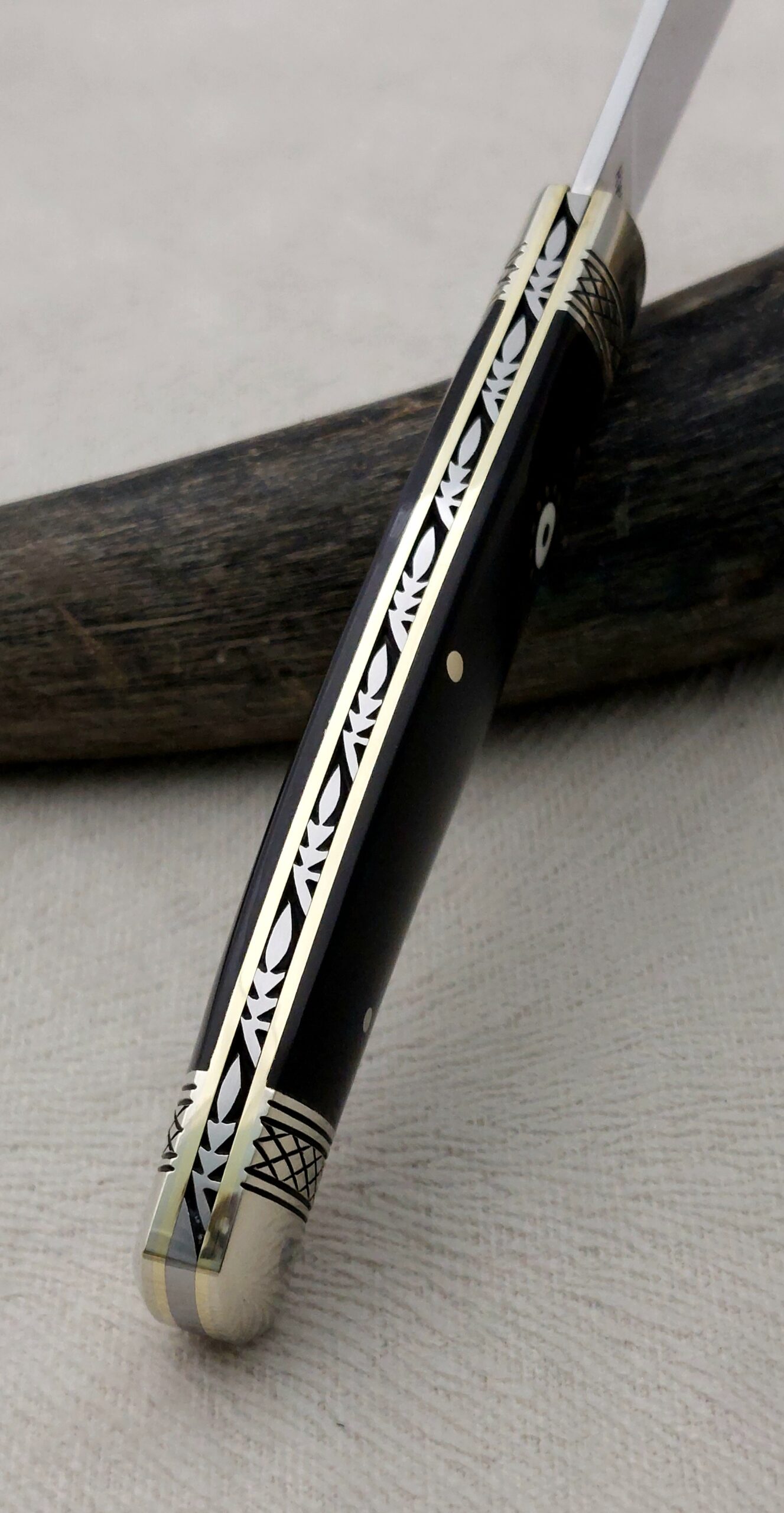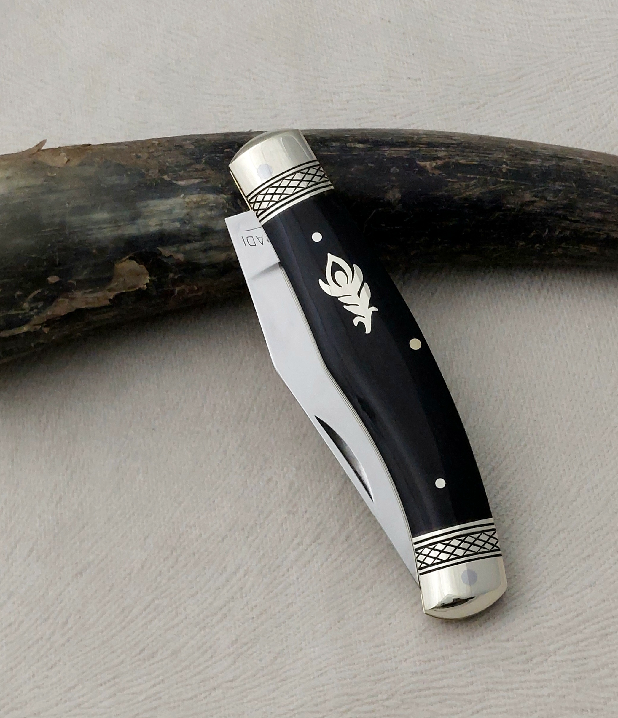 Díszítés:  Alpakka és mamut berakás, díszített rugó és alpakka bakni